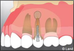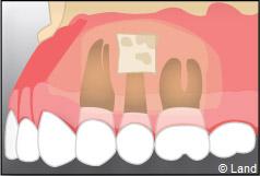Un biomatériau et une membrane destinée à la régénération osseuse guidée peuvent être mis en place dans la cavité ainsi dégagée.