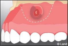 Une anesthésie et une incision semi lunaire sont réalisées et le lambeau de gencive est récliné.